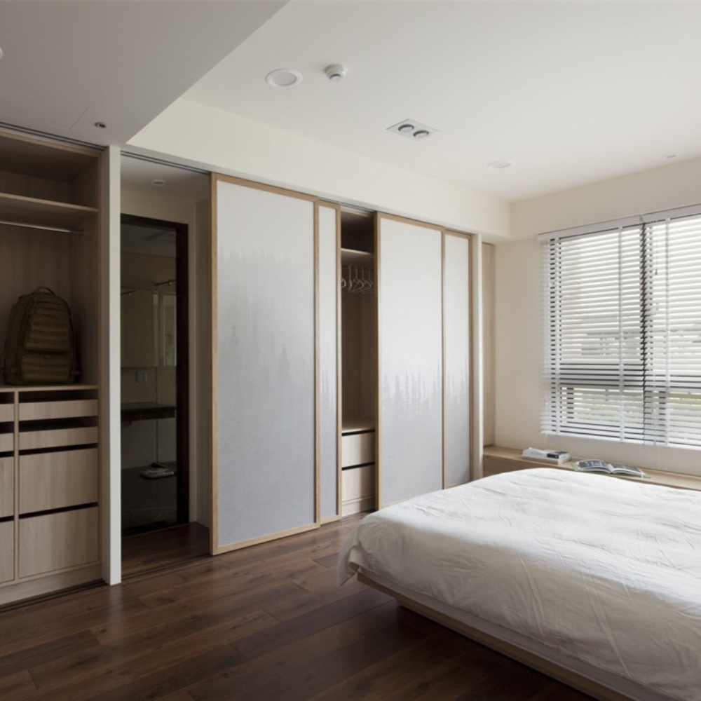 Tempered Glass Sliding Door Modern Design Wooden Wardrobe