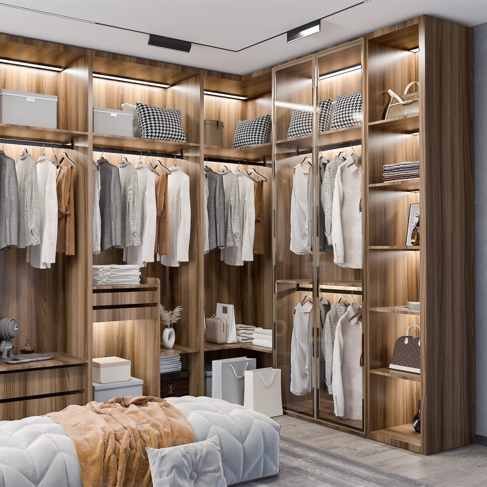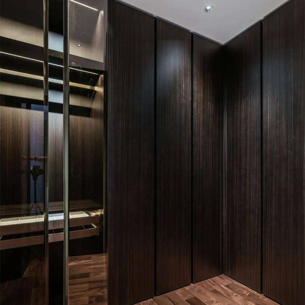 Durable Tempered Glass Doors Melamine Finished Wardrobe