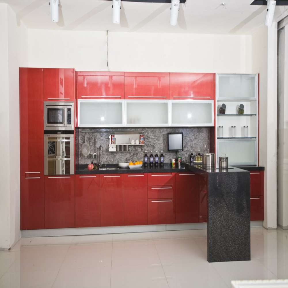Compact Set Gray Glossy Modular Kitchen Cabinets Designs