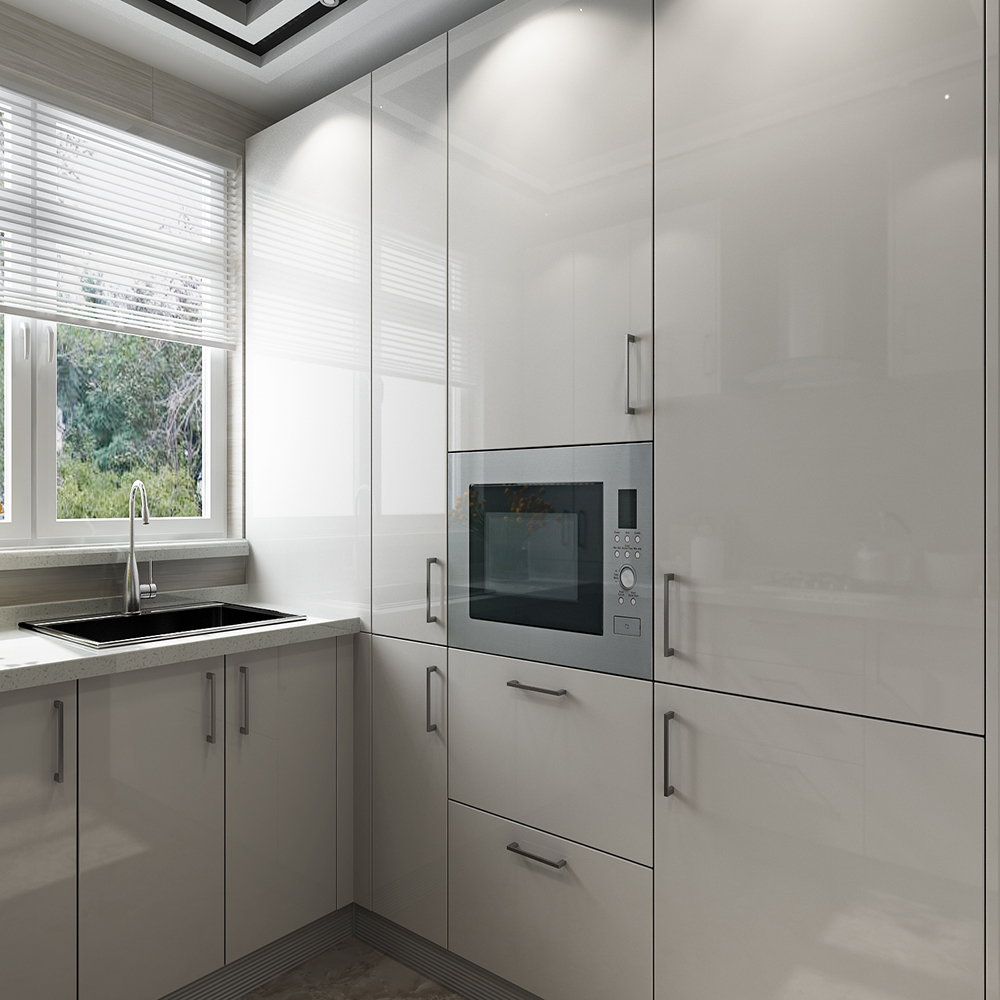 Glossy White Lacquer Finished U Shape Custom Made Modern Design Kitchen Cabinets