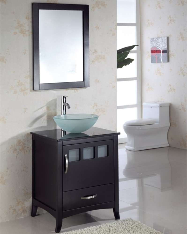 Tempered Glass Single Sink Floor Standing Bathroom Cabinets