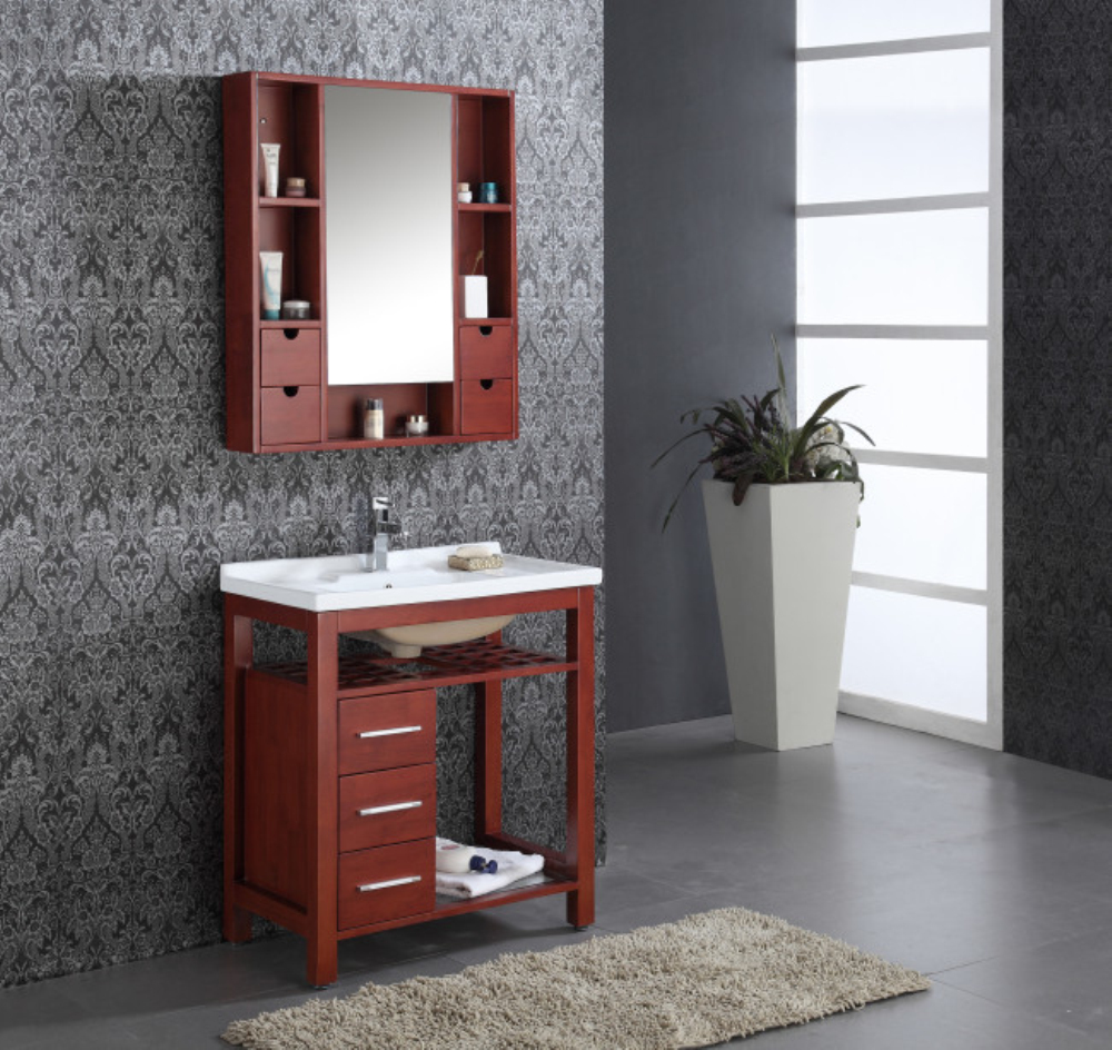 1.Bathroom Cabinet begins with strict selection of the Thailand oak wood material, create the excellent products.