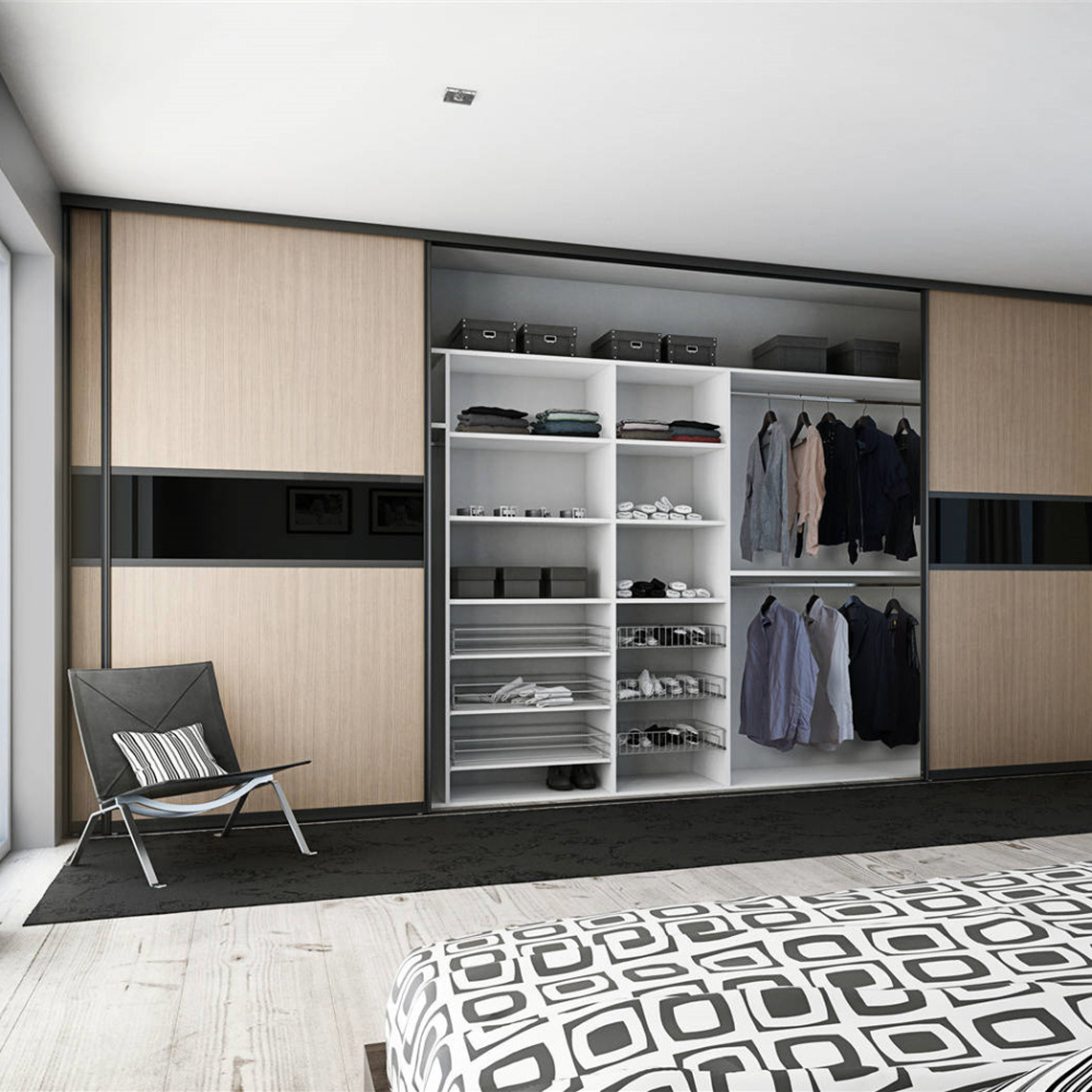 Tempered Glass Sliding Door Modern Design Wooden Wardrobe