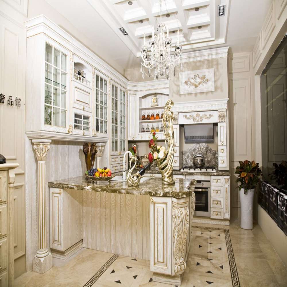 Foshan Furniture Kitchen Crown Column Luxury Solid Wooden Classic Joinery Kitchen Cabinet Design