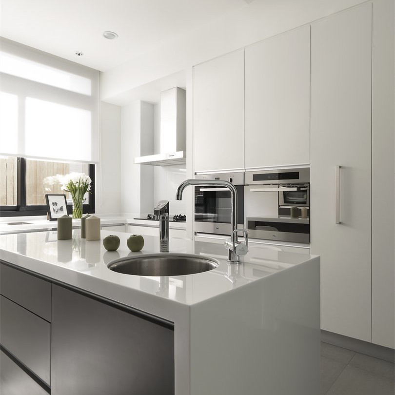 Small Modern Plywood White Lacquer Glossy Modular Kitchen Cabinet Set