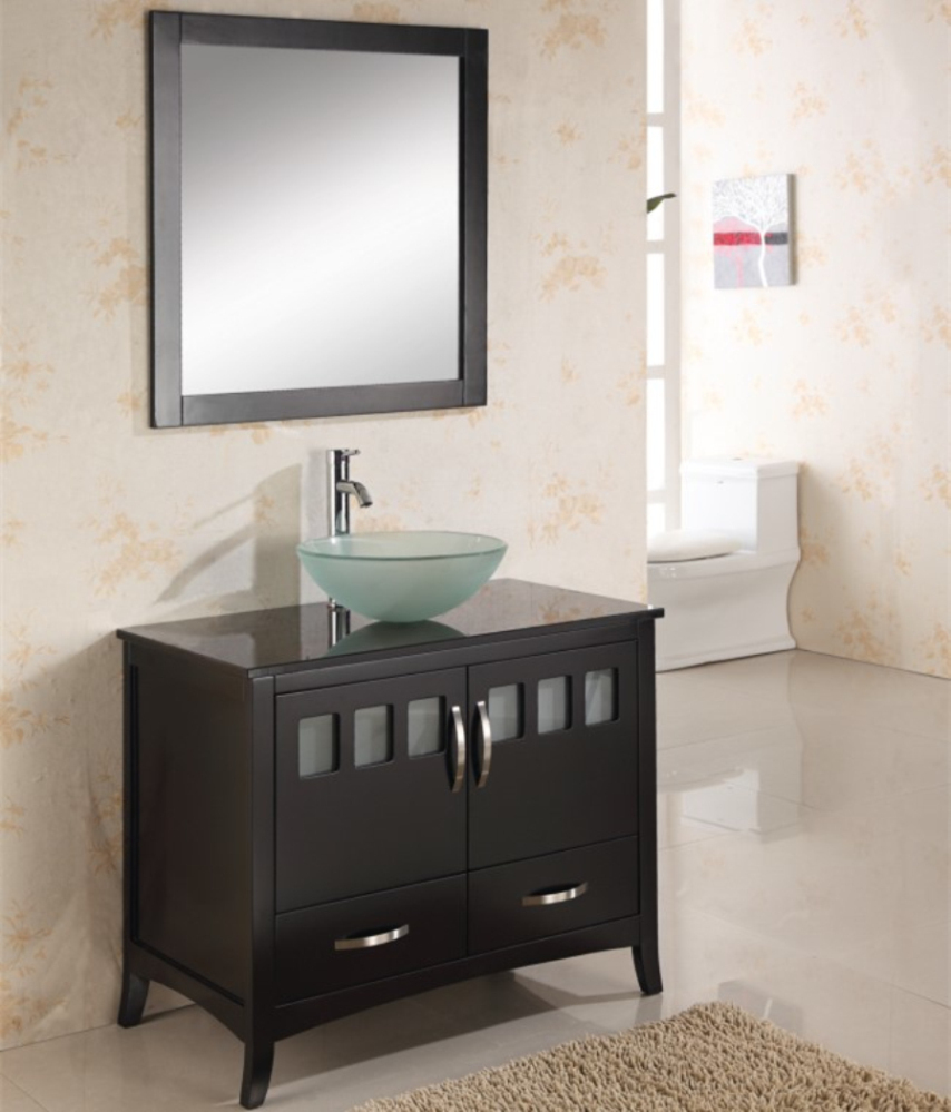 Tempered Glass Single Sink Floor Standing Bathroom Cabinets
