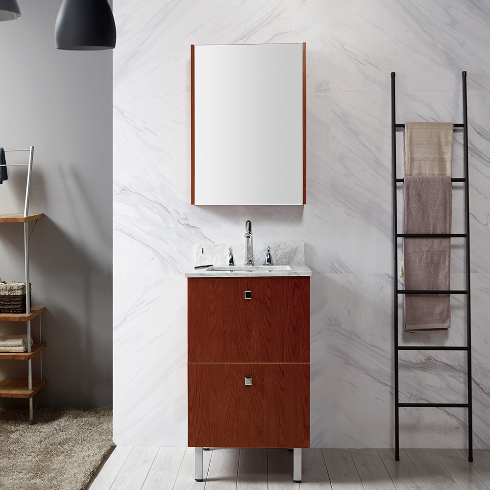 Modern Design Freestanding Wood Bathroom Vanity with Mirror Cabinet